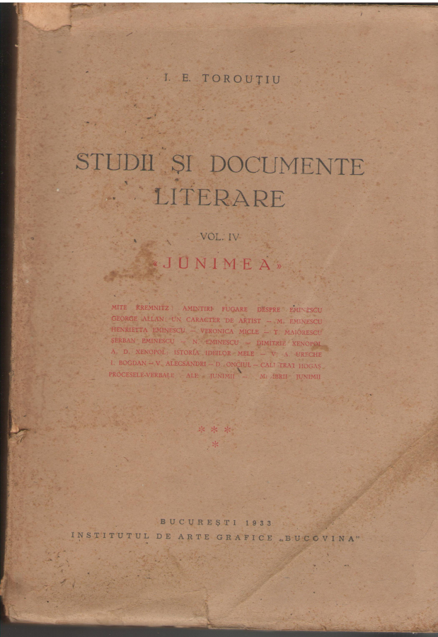 Studii si documente literare Volumul IV Junimea